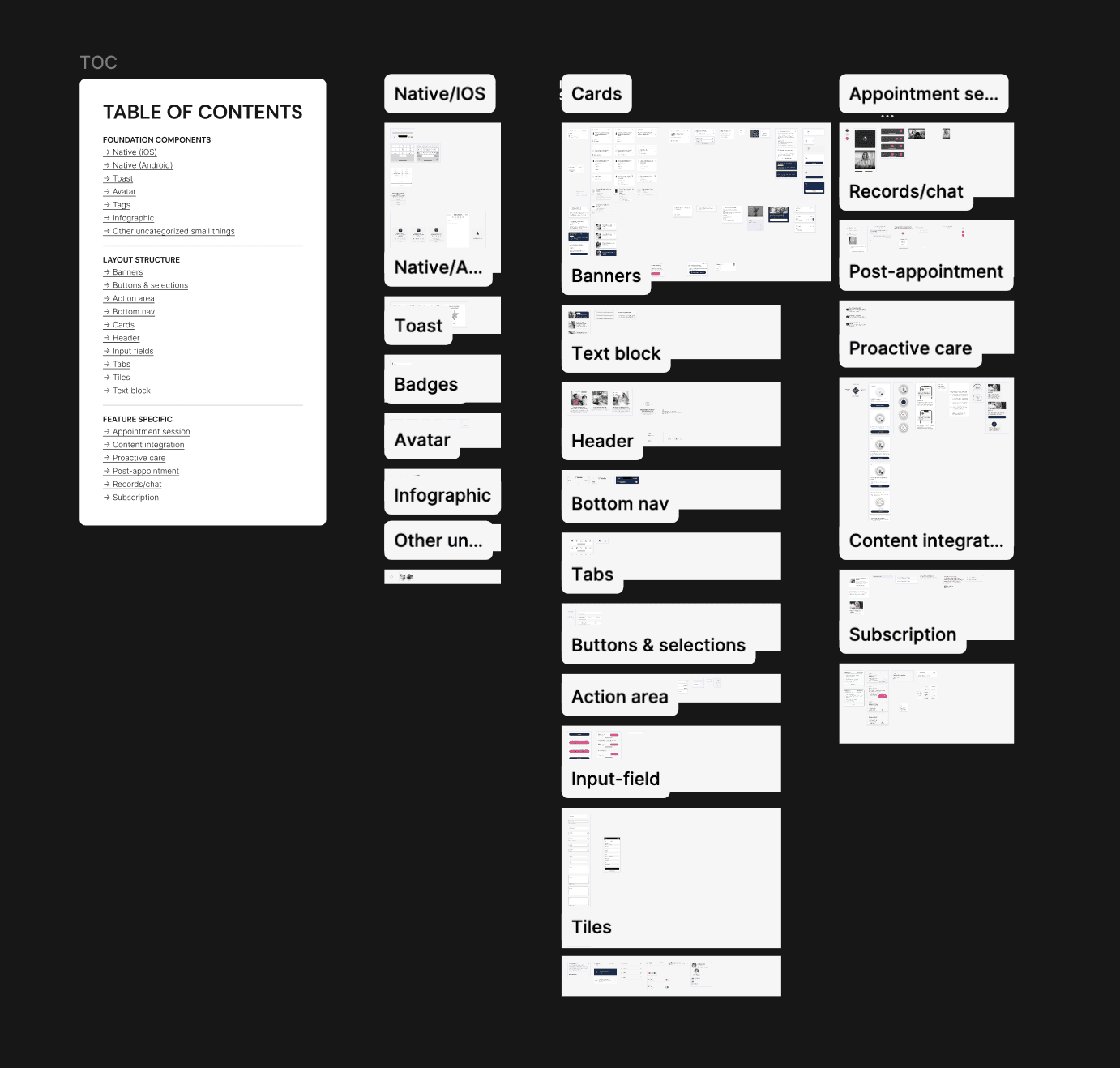 While building components and applying the updated branding for this mobile app project, I also had the opportunity to establish a design system from scratch, which previously did not exist at Vetster. This screenshot shows part of a living, evolving component library, with the full system documented in greater detail elsewhere.