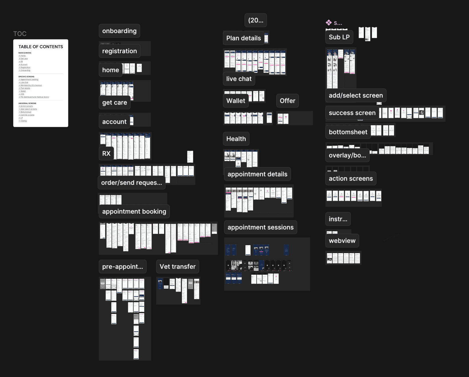 As the project was broken into multiple initiatives, I built and maintained a document that captured the end to end flow. This screenshot shows a living, evolving reference that brings together different flows and variants. The design team will regularly revisited and updated it so the broader team could easily view and stay aligned on the full experience.